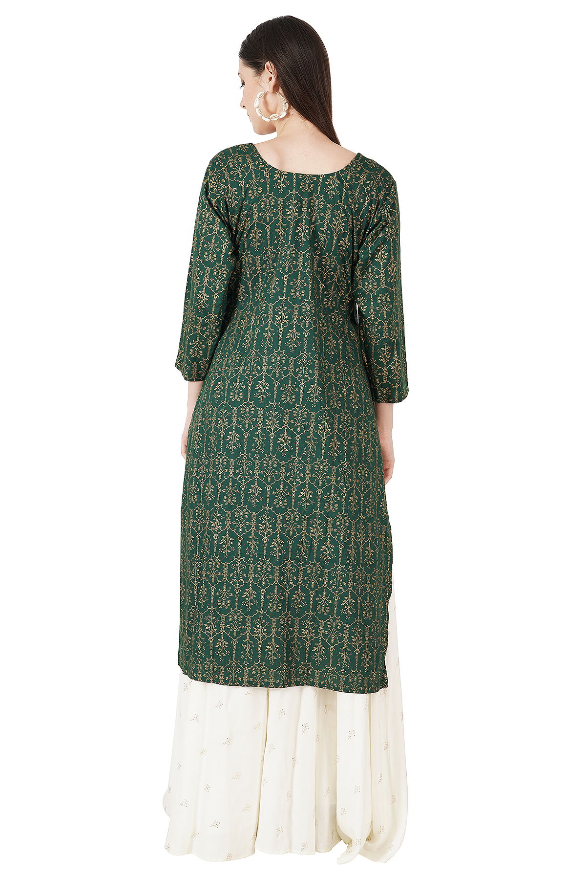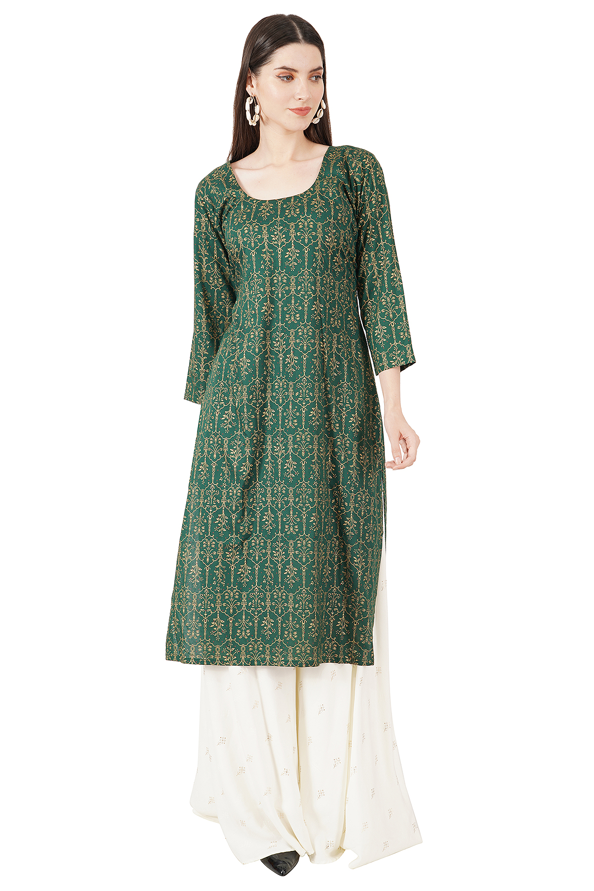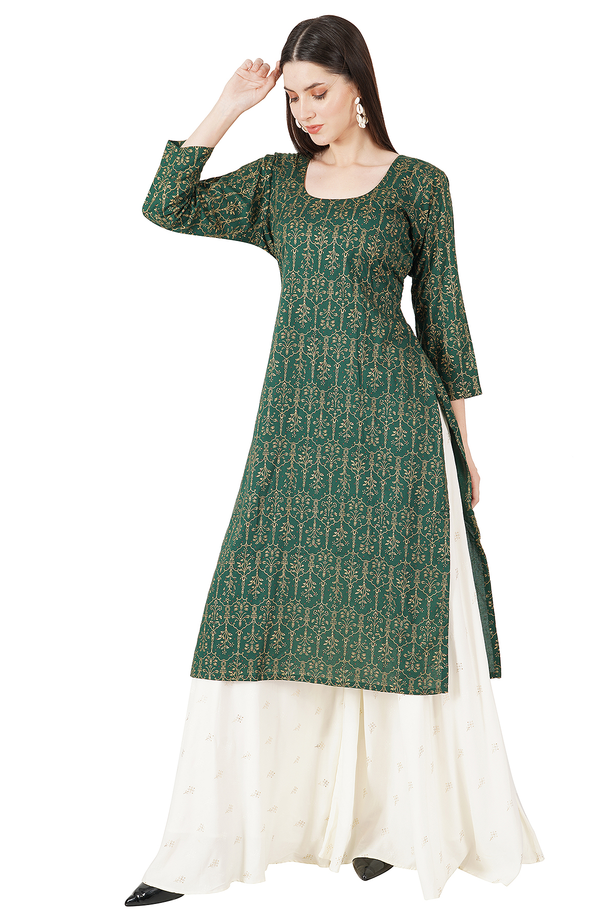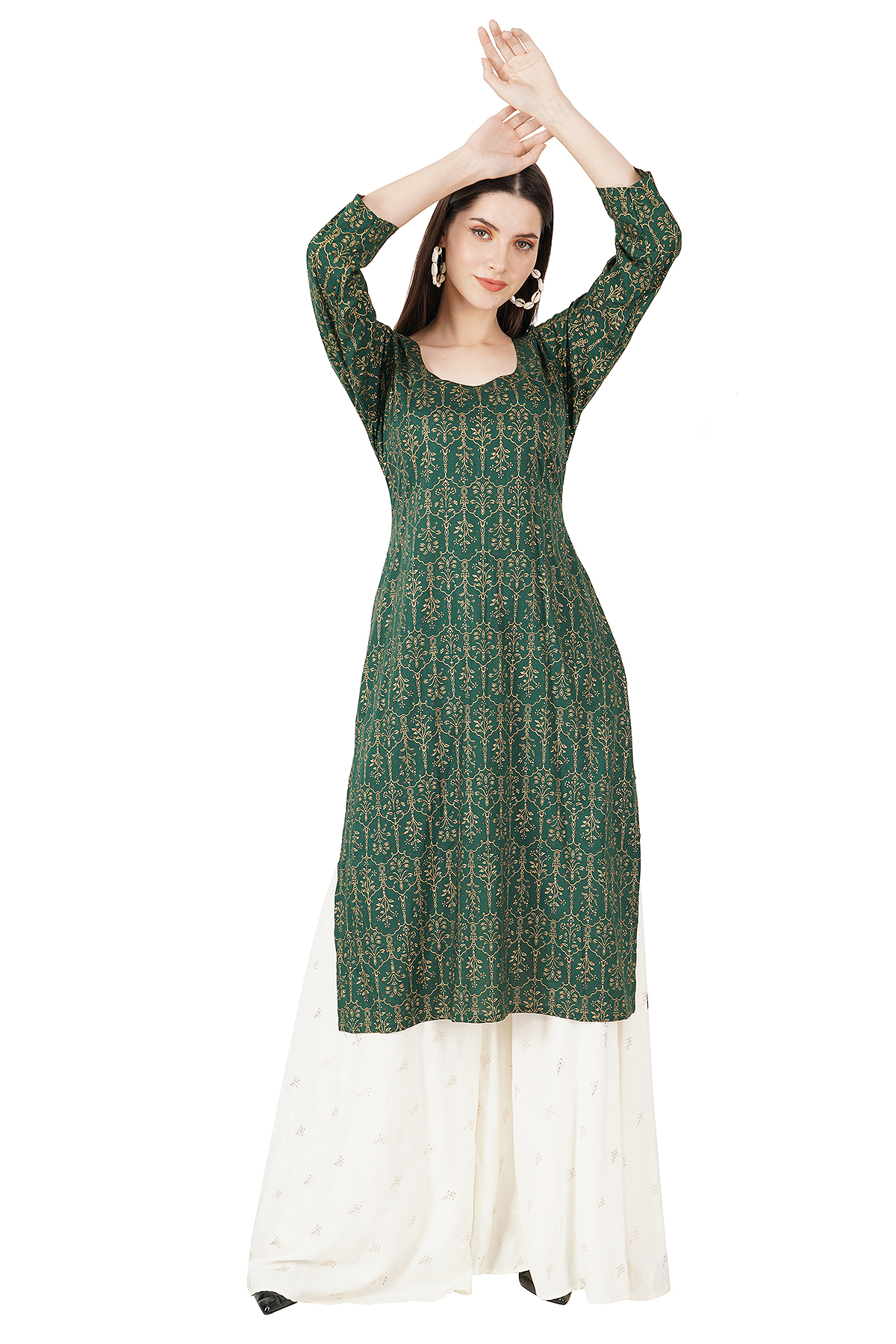 Green kurti & white Plazzo