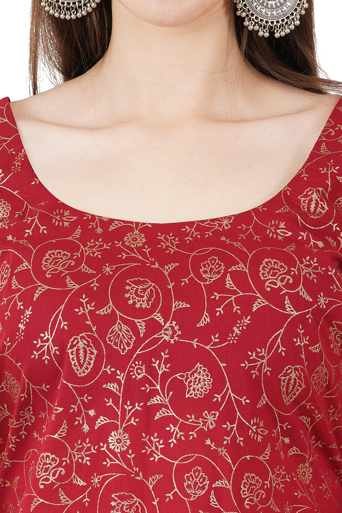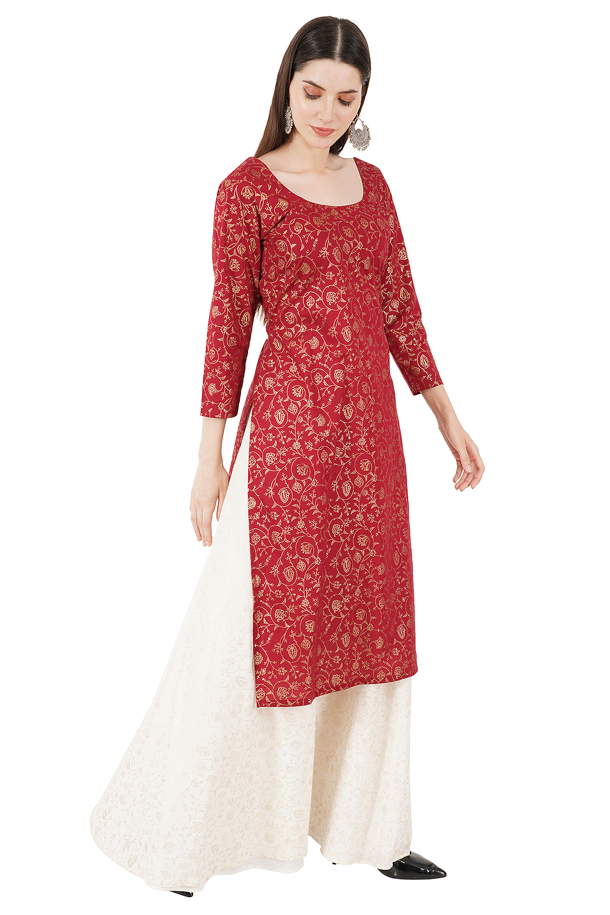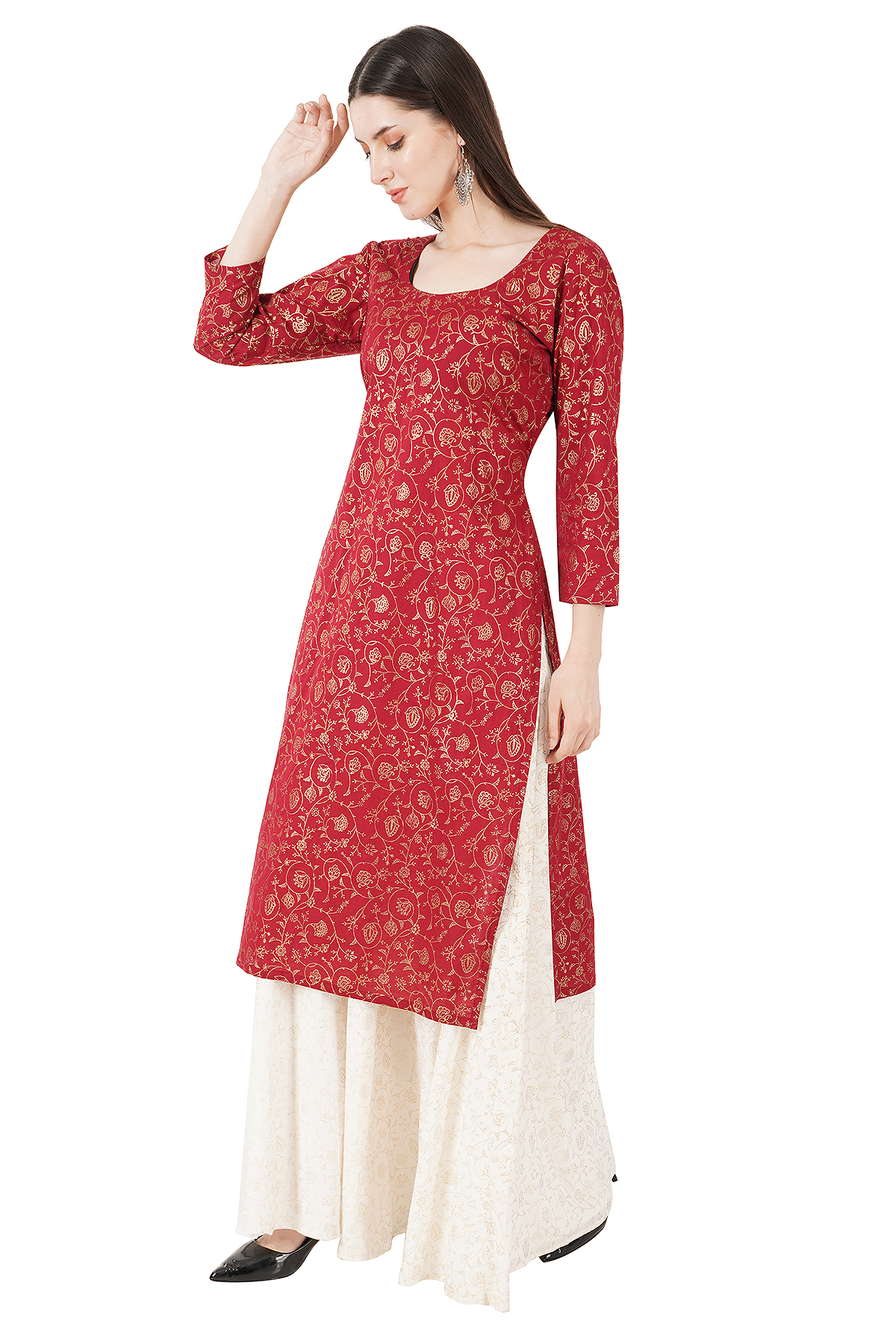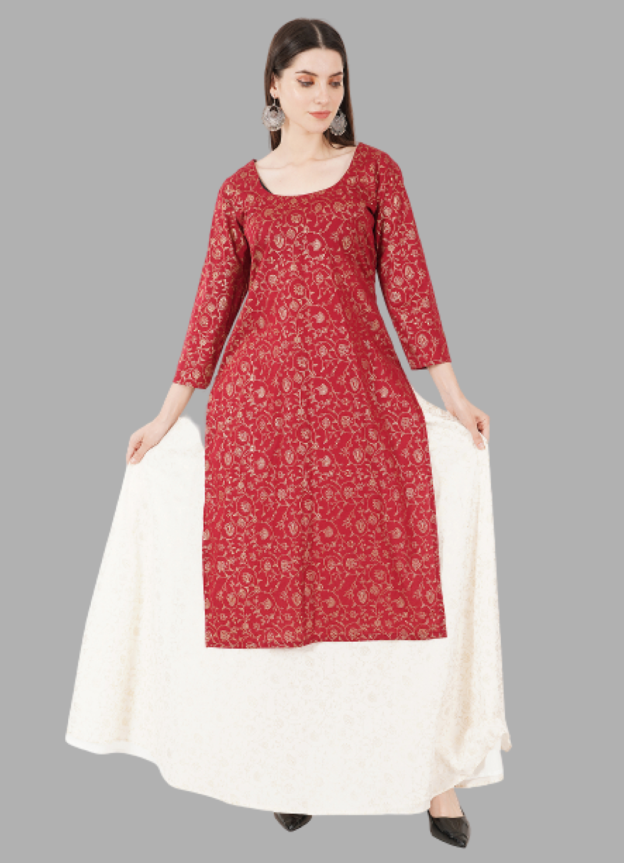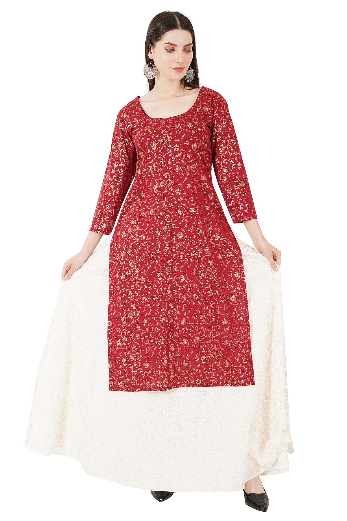 Red Kurti and white Skirt